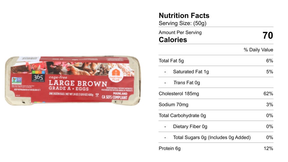 Whole Foods sells these dozen eggs for $3.39. What is the cost per serving, which is one egg?