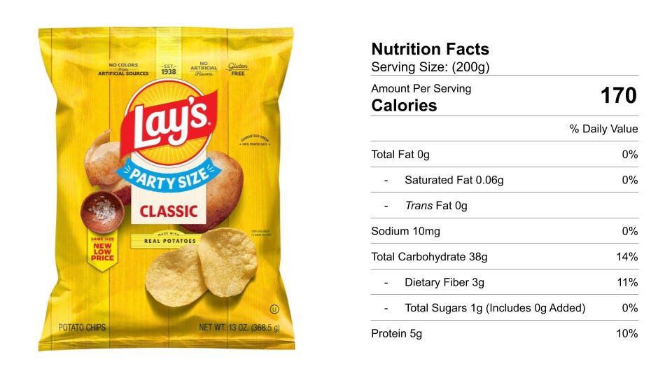 Target sells this bag of potato chips for $4.79. What is the cost per serving?