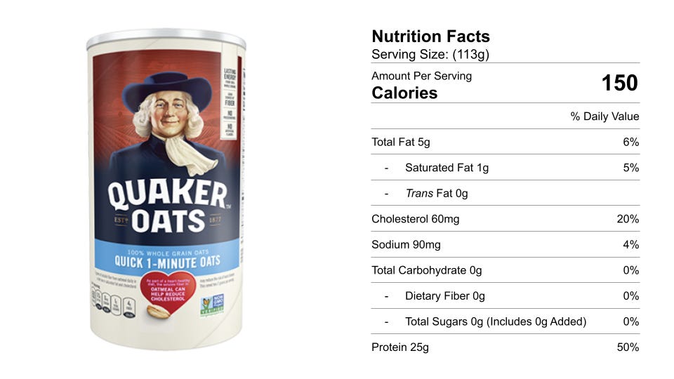 Along with supporting heart health and delivering lasting energy, whole grain oats also support a healthy digestive system by keeping things moving through the intestines. We should get 25–30 g of fiber per day. What percent of this daily recommendation is met from eating one serving of the oats?