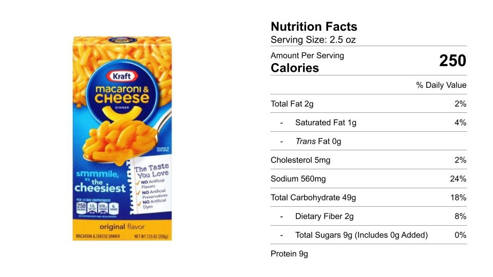 Amazon sells a pack of 35 boxes of this mac & cheese for $87.00. One box has 3 servings. What is the cost per serving?