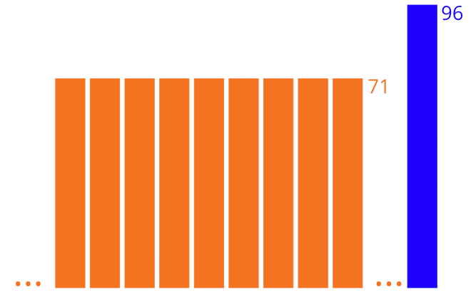 She must have distributed her extra points to her classmates, raising everyone’s bar to 72.