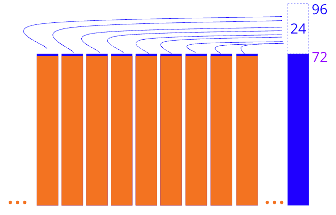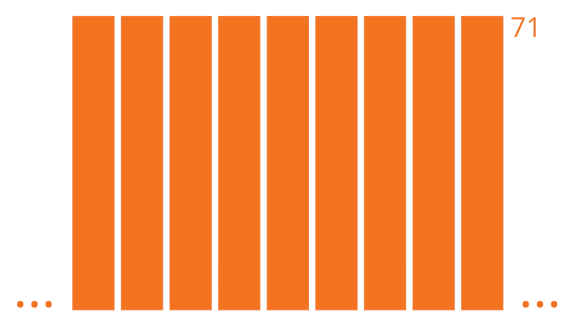 You probably know by now that I see rectangles everywhere in math. When I think of the mean, I picture a stack of rectangles, all the same height. Here’s my mental image of the mean score of 71: