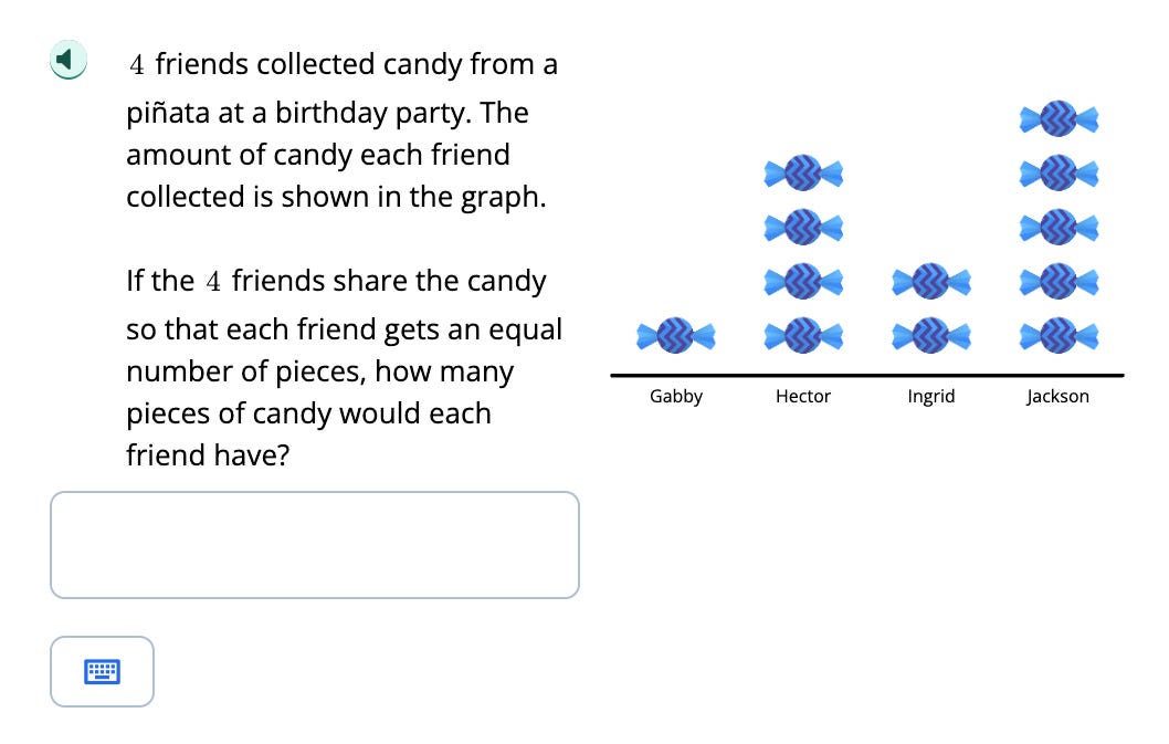 In 2nd and 3rd grade, students spend a lot of time thinking about equal sharing and grouping. The problem below gives meaningful context, and the visual model makes the idea concrete and especially powerful:
