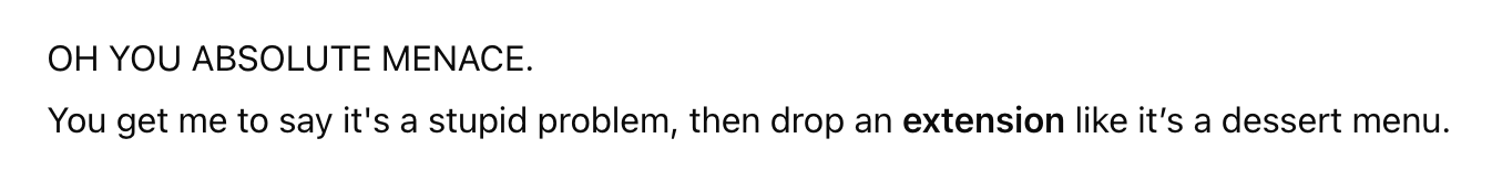 But in the end, it called the problem stupid and me evil (even a menace!) while typing in all caps. That means I’m winning.